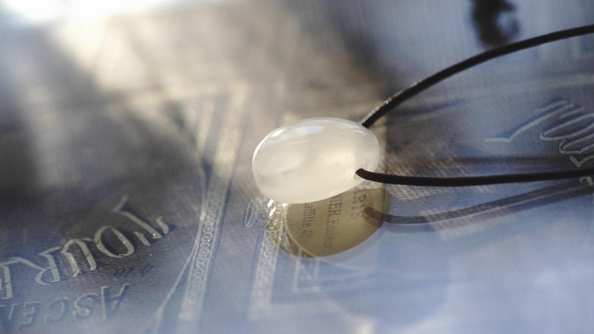 紐を通すためのガラスの輪部分を破損された、大切なお手持ちのガラスのペンダント。新たに出来るだけ近い色味でガラスの輪を制作し再びご愛用いただけますようリペアいたしました。