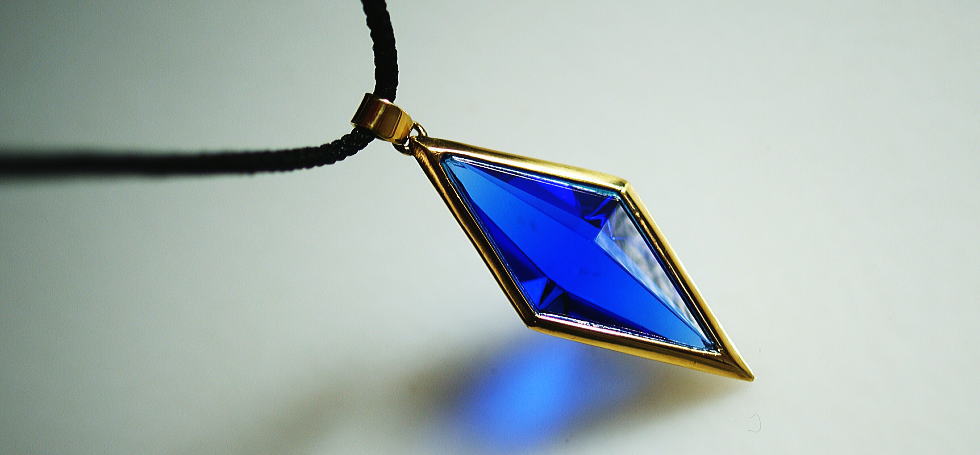 ガラス工房で制作された『ゼルダの伝説』に登場する通貨、「ルピー」を模した1点ものの大切なお手持ちのガラスのオブジェ。ご愛用中に落下し欠損が発生した部分を、削りと磨きによって整えて可能な限りの復元を行ってリペアいたしました。