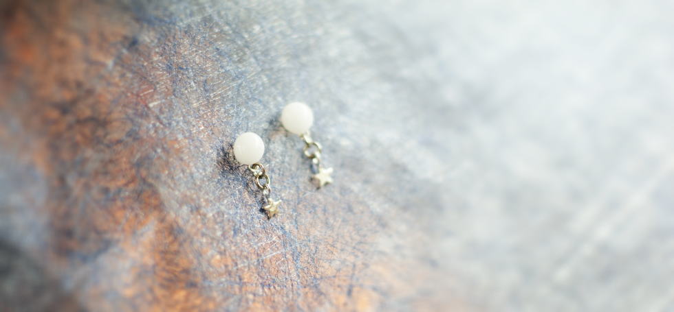 以前お作りした球体ペンダントを、お手持ちの三日月チャームと合わせオリジナルピアスとしてリメイクいたしました。