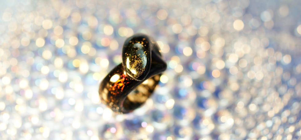 手のひら側の細い部分を破損された大切なお手持ちのベネチアンガラスのリング。破損個所を埋めるように、内側にSilver925素材で彫金加工によるリングを制作し、再びご愛用いただける状況にリペアいたしました。