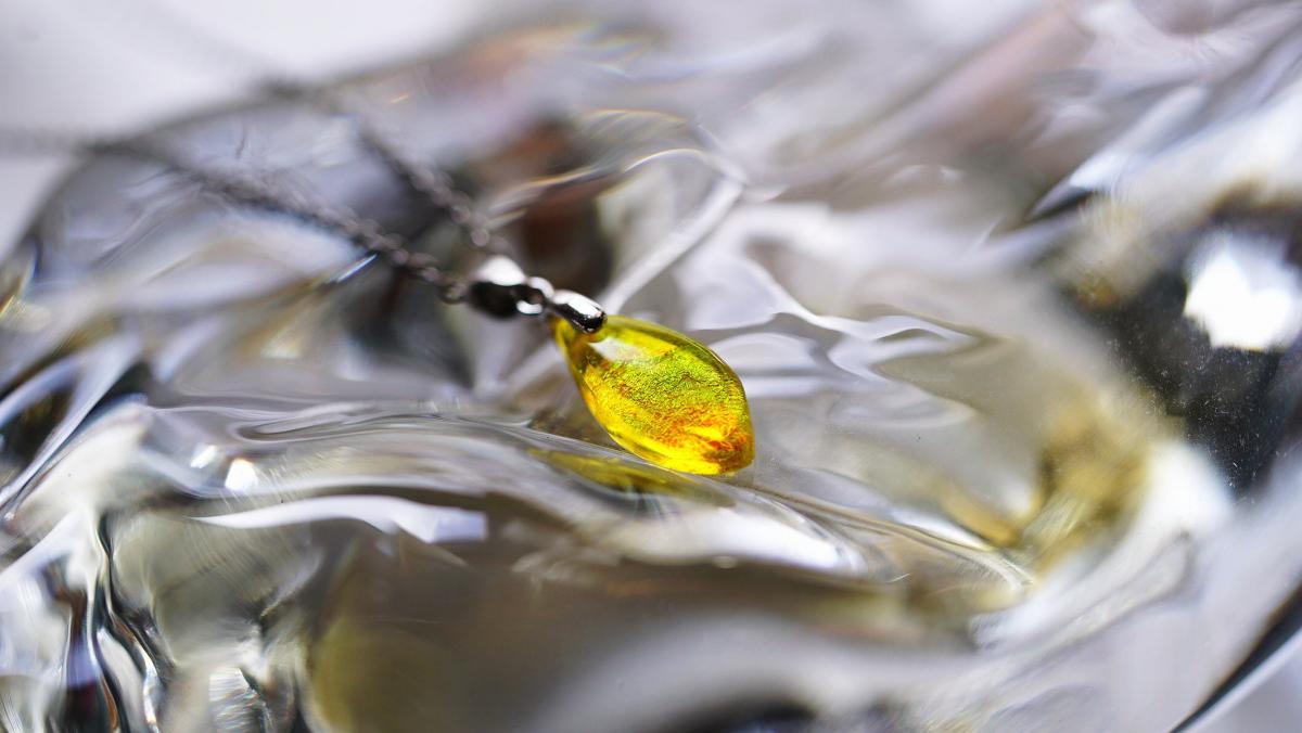 落として破損されたガラスのペンダント。ガラス自体が非常に脆くなってしまっており(破損時の影響や徐冷不足など様々な要因)修復途中に何度もの破損を繰り返したため、時間を掛けて再焼成を行いガラスの強度を高め、周囲や全体を磨きなおし、よりシンプルな形状へとリメイクいたしました。