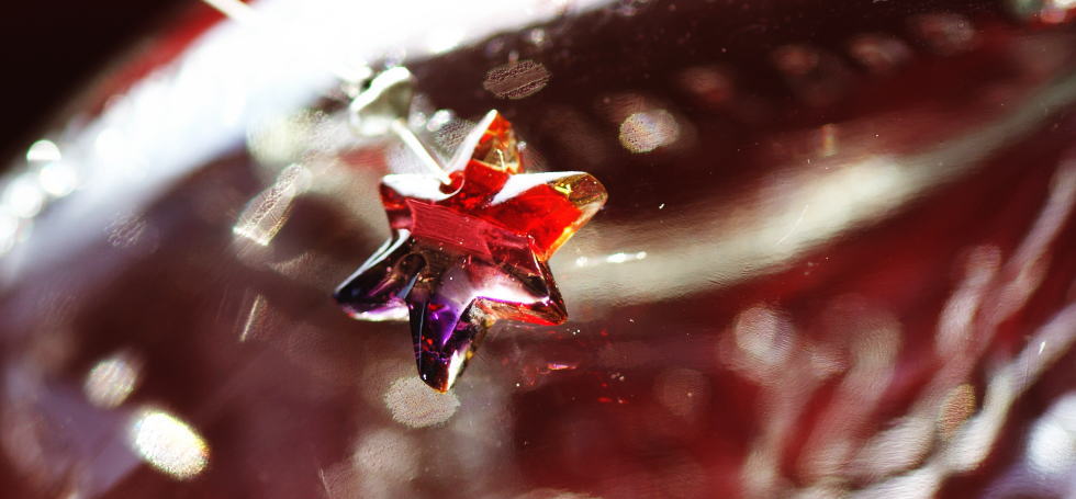 お手持ちのスワロフスキーのハート形オブジェ。欠けた頂点を磨き仕上げてまいりました。