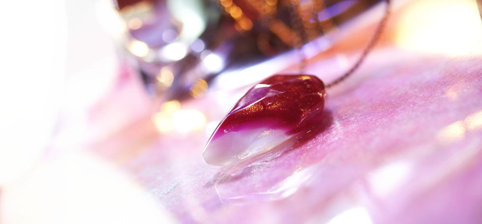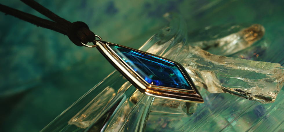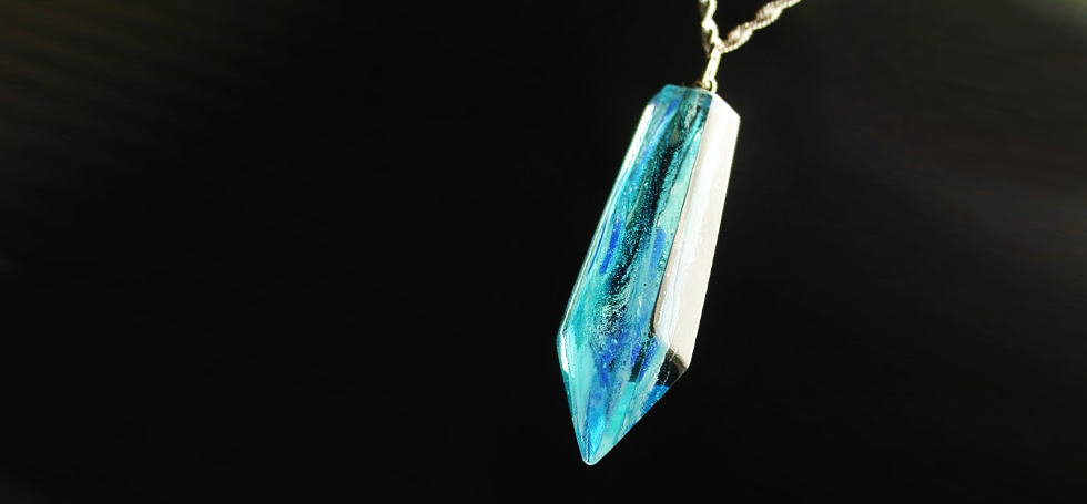 大きく全体を破損されてしまわれた、お手持ちの大切なガラスのペンダント。新規にこちらで制作したトップに交換しリペアいたしました。