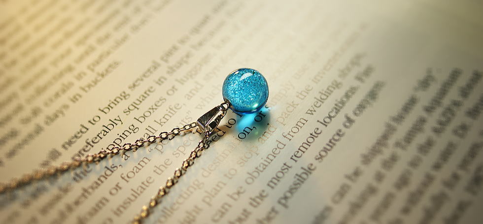 壊れてしまわれたお手持ちの大切なガラスのネックレス。出来るだけ元のデザインを崩さない様に破損個所を接着による方法で修復いたしました。
