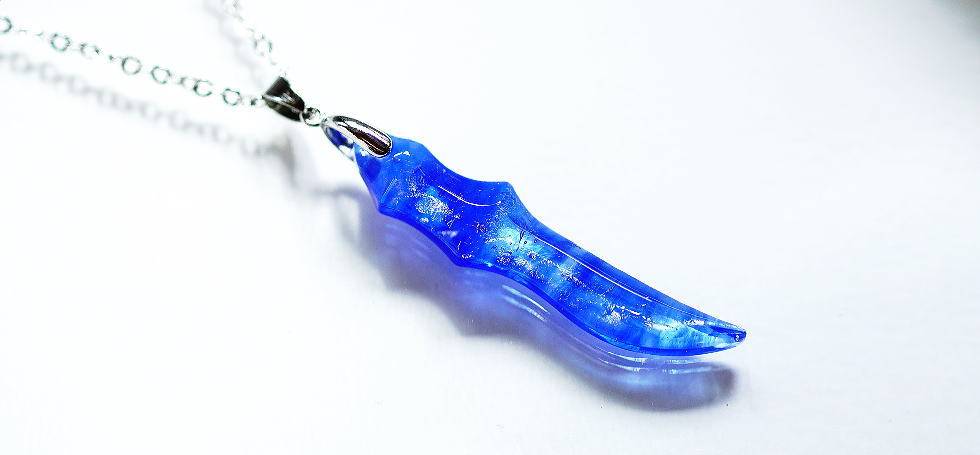 ひびが入ってしまった状態になってしまったお手持ちの大切なガラスのハートのペンダント。ひび部分を目立たないように出来る限り修復し、クリアーコーティングして仕上げてまいりました。