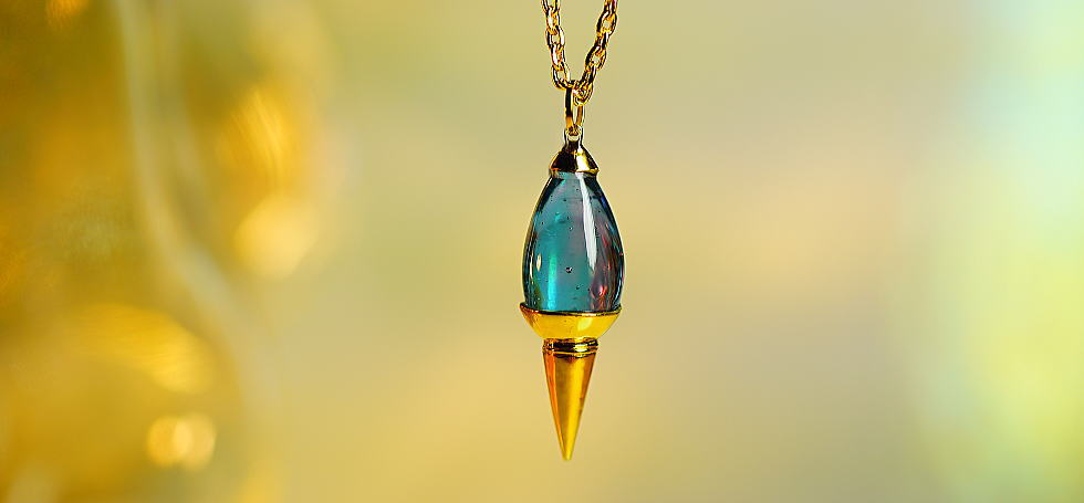 破損されたお手持ちの「MANUELA ZANVETTORI」のペンダント。空洞の破損されたガラスパーツの破損箇所を整えワイヤーを交換後、華やかなイメージのゴールドパーツを追加してリペア・リメイクいたしました。