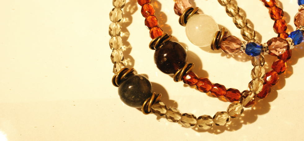 ワイヤーが切れてバラバラになってしまった、お手持ちの息子様からのスペイン土産ベネチアンビーズブレスレット。一部足りないビーズを補いワイヤーを強度のある太めのものに交換して、再びご愛用頂ける形にリペアいたしました。