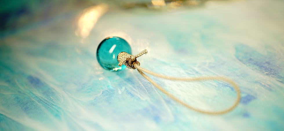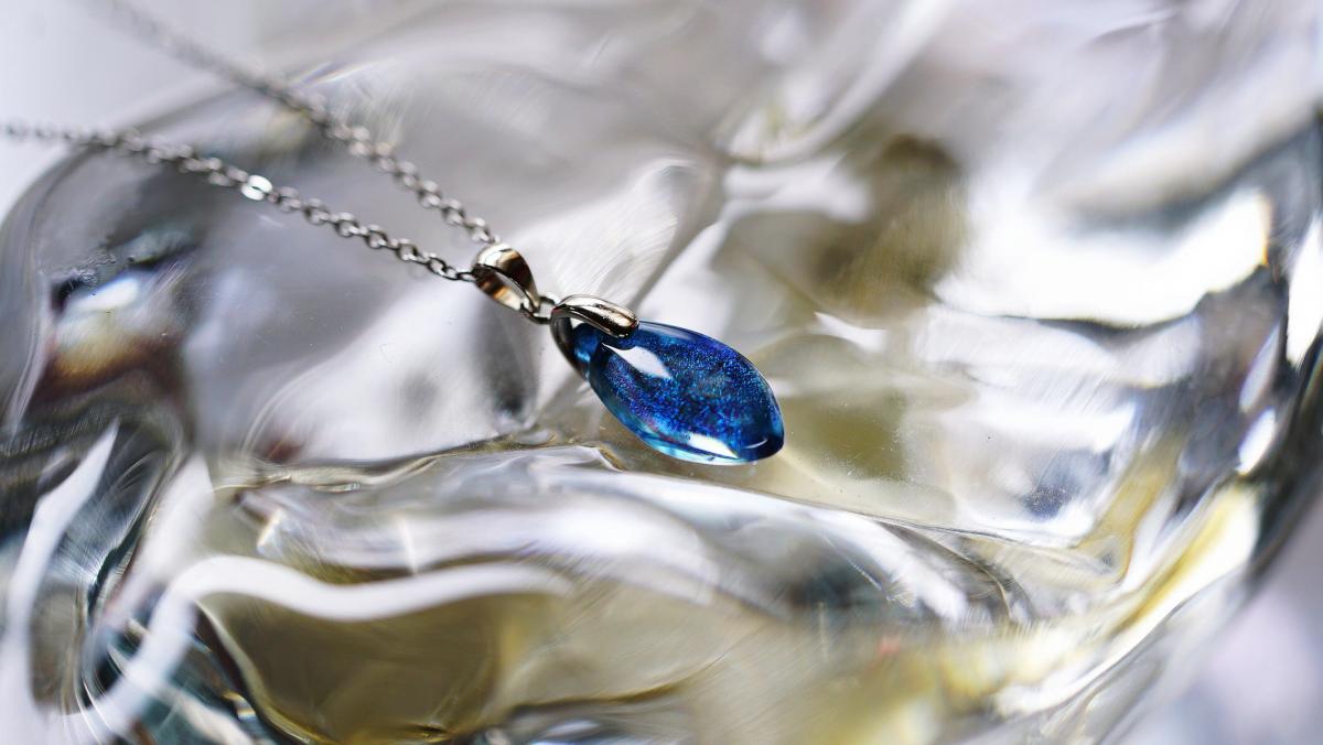 函館で購入された思い出の大切なお手持ちのガラスのペンダント。欠けてしまった先端部分の形を成形、鏡面磨きを行い、再びご愛用いただけるペンダントトップにリペアいたしました。