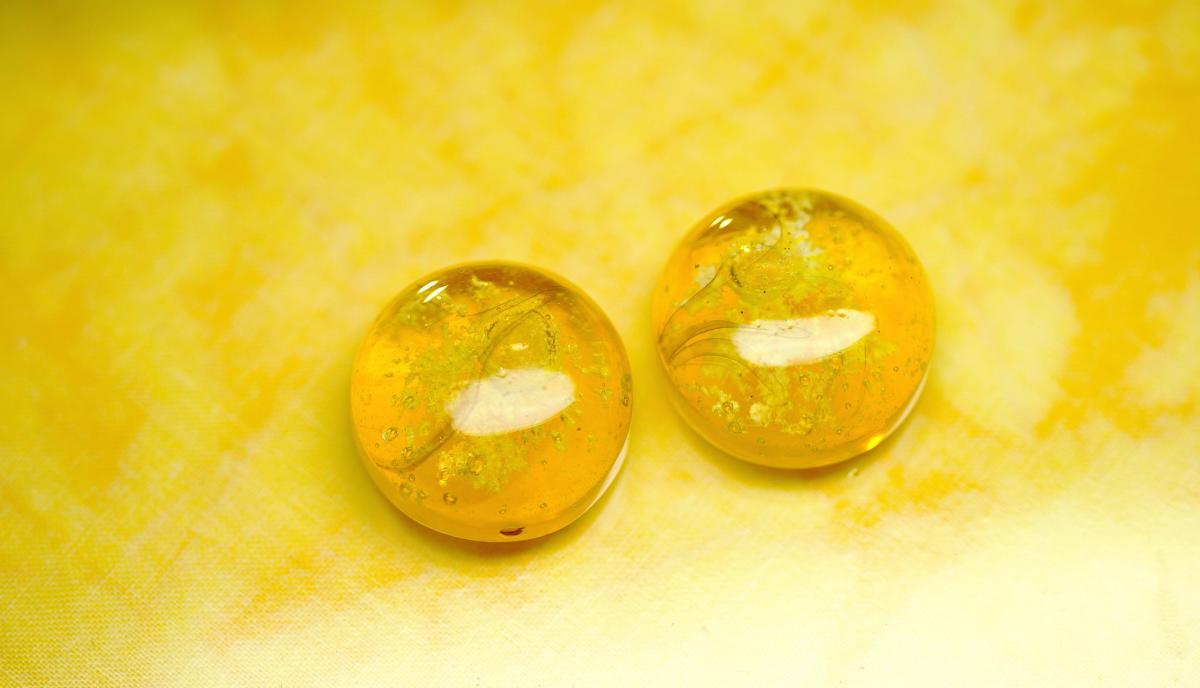 落として破損されてしまわれた大切な方から頂いたお気に入りのガラスのリング。リング部分をカット、鋭利な部分を危険の無い様に丸みを持たせ、形を整えて磨き、新たに左右セットのオリジナルピアスとしてリメイクいたしました。