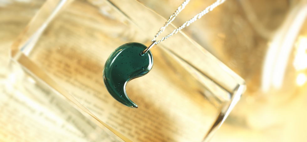 「ウランガラス」と呼ばれる戦前のガラスのコップをリメイクしてお作りした、世界にひとつのペンダントトップ。こちらは作品集に『Inherit memories / ウランガラスペンダントトップ』としてアップしております。