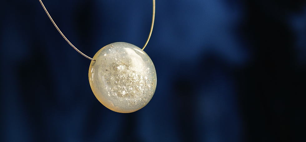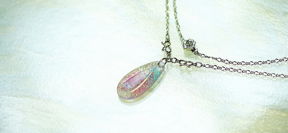 ご主人から頂いた破損されてしまわれた大切なガラスのリング。形を変えて新たにペンダントへとリメイクいたしました。